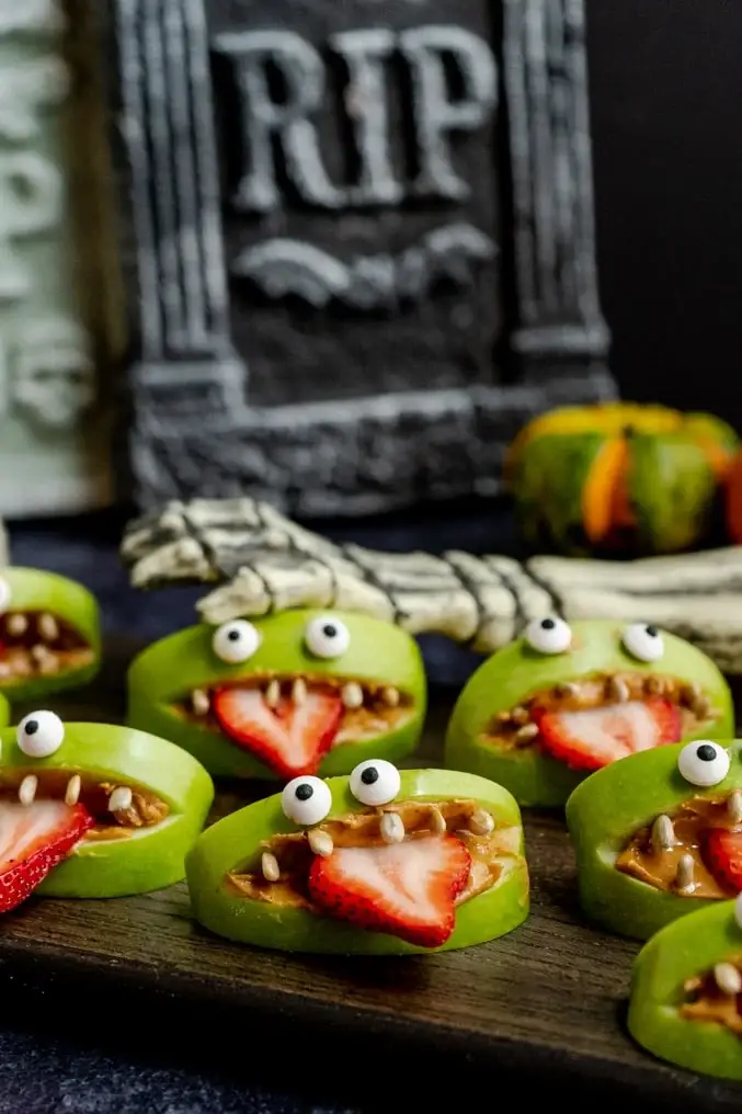 If you want something healthy, try Halloween Monster Apple Snacks from The Delicious Spoon. Sliced apples turned into green monsters with peanut butter and teeth—fresh and crunchy!