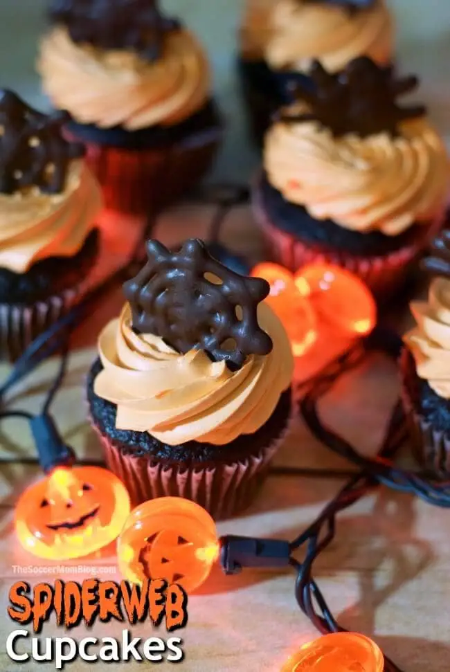 5. Spiderweb Cupcakes and Chocolate Spiders
