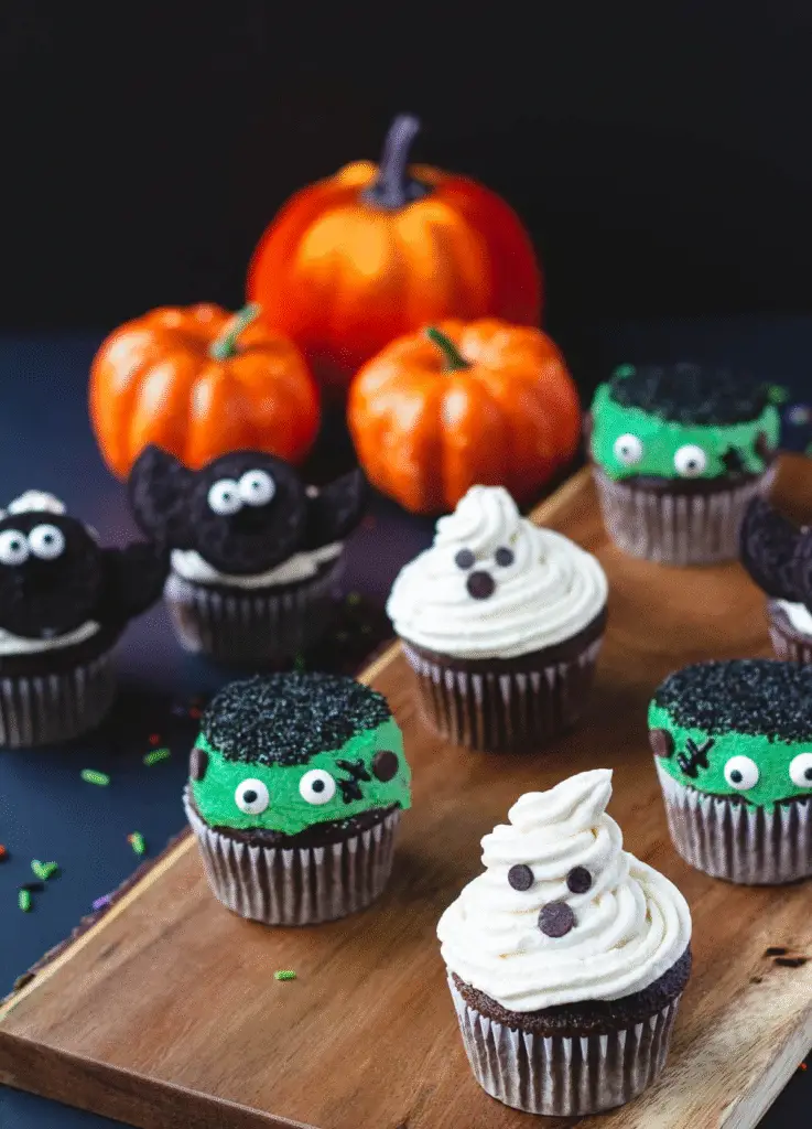 Wrapping up with Vegan Halloween Cupcakes from Keeping the Peas. These chocolate cupcakes with spooky frosting are plant-based and moist!